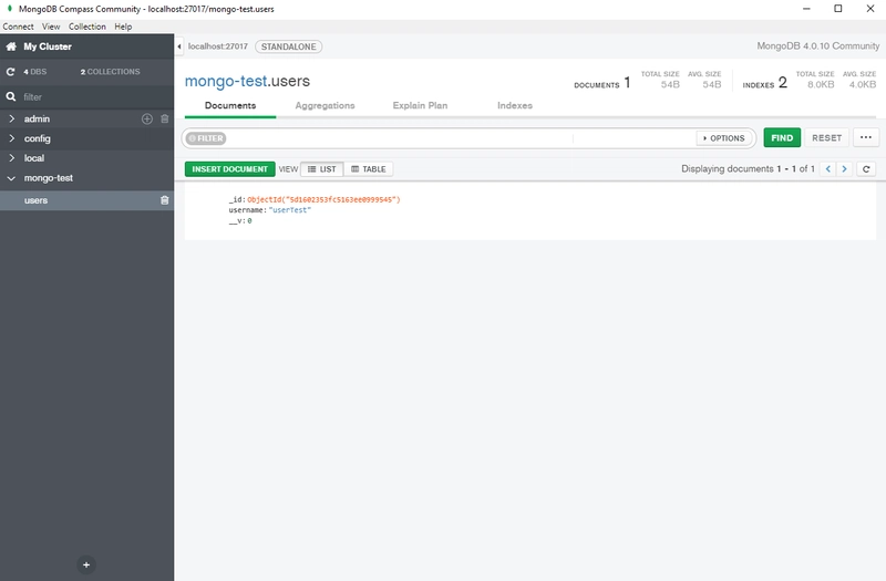 完成后,您可以返回 MongoDb Compass 并在此处检查用户集合。您应该看到以下内容: