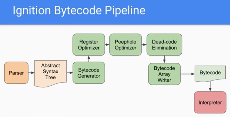 优化管道是顺序的,这使得 Ignition 可以读取更小的字节码并解释更优化的代码。