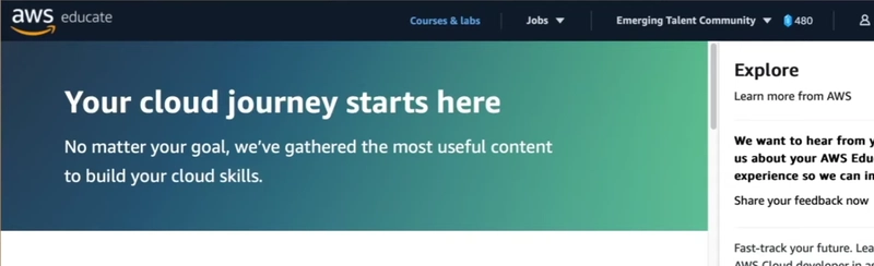 一旦您符合资格标准,您将在 AWS Educate 个人资料中看到“新兴人才社区”选项卡。