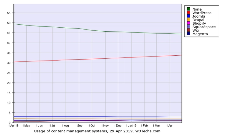 截至撰写本文时(2019年4月),WordPress 为超过33% 的网站提供支持。其市场份额在过去几年中一直在增长,并且没有放缓的迹象。