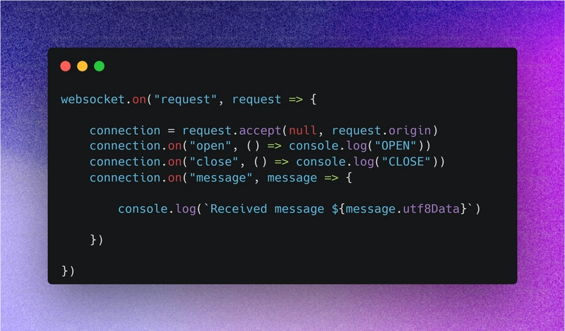 以下是我们可以使用的事件:open、close、message 等。WebSocket 的核心在于这些事件。
