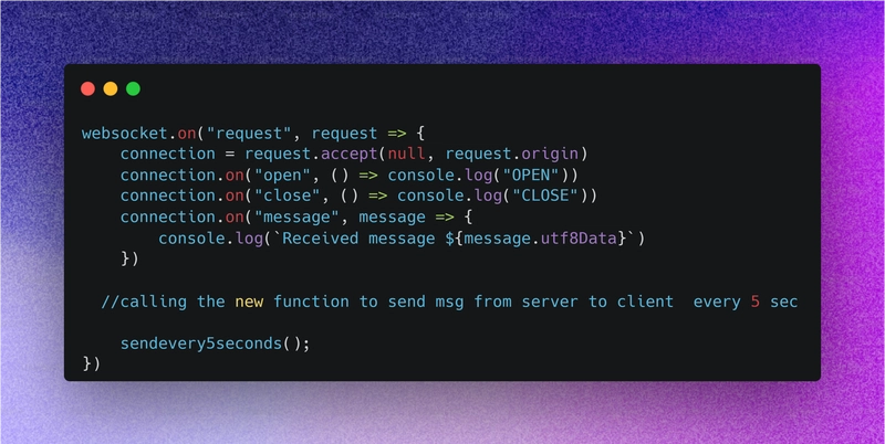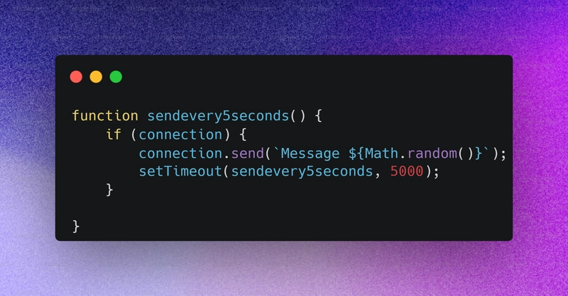 但这只是基本的连接。接下来,我们将创建一个函数,定期从 WebSocket 服务器向客户端发送消息。可以参考游戏直播、Twitch 直播、视频直播等应用场景。