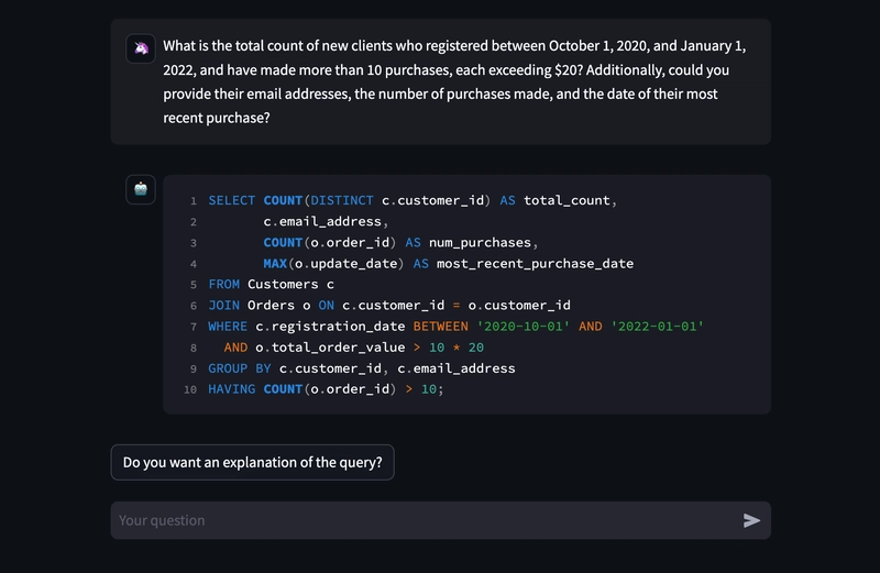 # Ask a question for generating the SQL