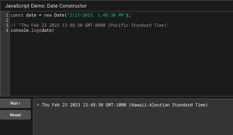 现在,尽管时区信息仍然存在console.log,但如果我们在檀香山运行相同的代码,我们会得到