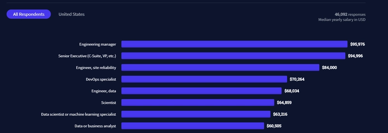 根据Stack Overflow 2021 年的调查,数据工程师是收入最高的五大专业人士之一,仅次于 SRE 和 DevOps 工程师: