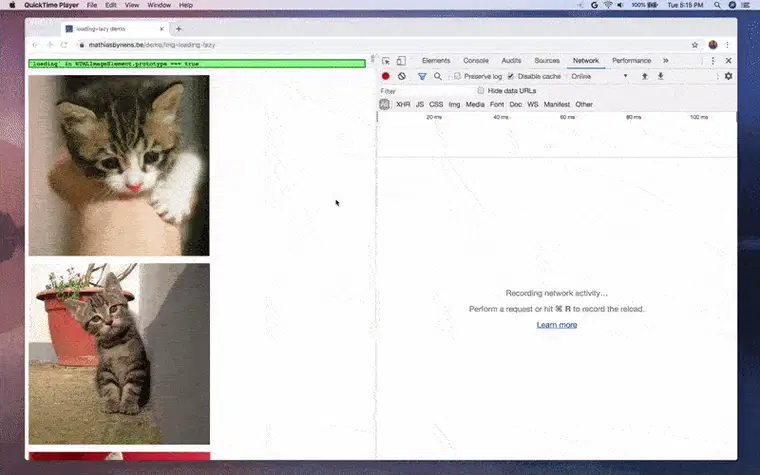 图片懒加载可以提升网站性能,从而改善用户体验。看看下面的 GIF 动画,里面有可爱的猫咪,效果很棒 :)
