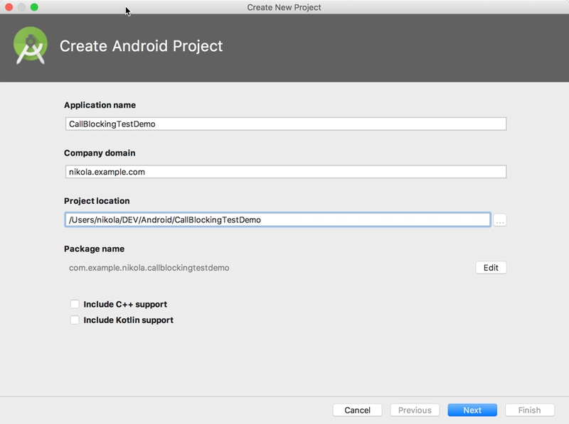 创建一个新的类(File->New->Java Class),将其命名为IncomingCallReceiver,并将以下代码粘贴到其中(注意:你的package名字要和我的不一样!):
