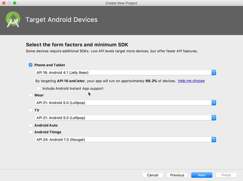 保留最低 API 级别的默认选项: