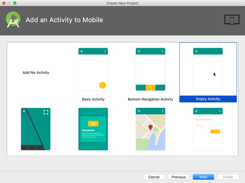 选择Empty Activity模板: