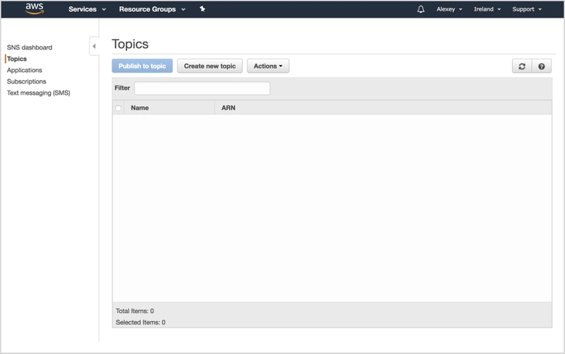 在 AWS 中浏览简单通知服务。讽刺的是,这项服务一点也不简单,尤其是他们使用的术语和你需要完成的步骤。