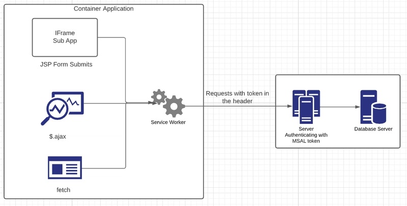- 对用 JSP 编写的旧版 UI 代码进行更改:旧版代码数量庞大,融合了多种 UI 技术,涉及表单提交的 POST 请求、XHR 调用、原生 JS fetch 调用、jQuery 的 $.ajax 调用以及少量 axios 调用。要避免几乎每个代码部分都需要修改,同时还要确保新的身份验证机制正常工作(即每次服务器调用都应在 HTTP 标头中附加一个 bearer token),这变得非常困难。