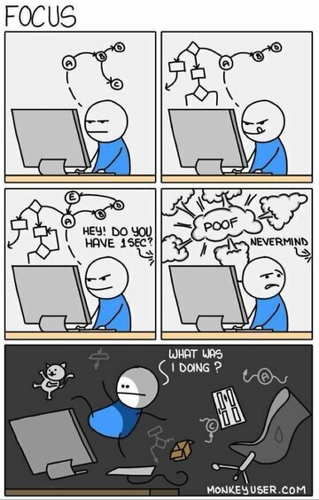 因此,网上有很多表情包和漫画描绘了开发人员遭受干扰和上下文切换之苦,也就不足为奇了。