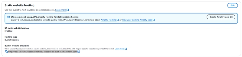 结论:就是这样!只需几个步骤,我就使用 Amazon S3 托管了一个静态网站。最棒的是,我无需设置任何服务器、安装软件,也无需担心流量扩展。S3 会在后台自动处理所有这些工作。与 EC2 或其他传统托管方案相比,使用 S3 托管静态内容要简单得多。它速度快、成本低、可扩展。无论您是托管作品集、个人网站还是落地页,S3 都是绝佳之选。