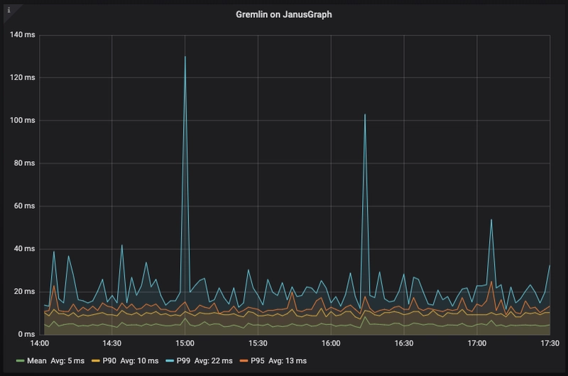 这种新的属性图结构使我们能够以结构化且可遍历的方式表示时间约束。然而,计算何时将货物送达客户的操作仍然在图之外进行。图上更自然的时间数据(而非逻辑)表示方式使我们能够在该层进行优化。最终,系统响应时间为: