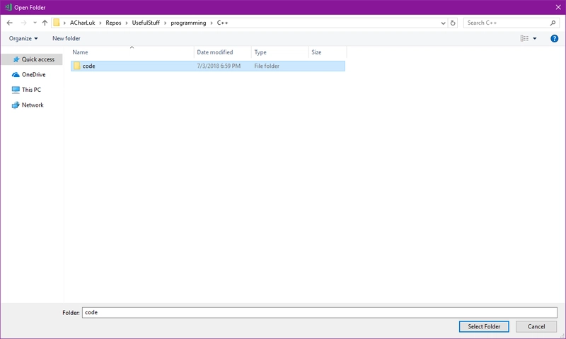 要设置项目的文件夹,请转到文件>打开文件夹(或按[Ctrl+K Ctrl+O]),将弹出如下对话框: