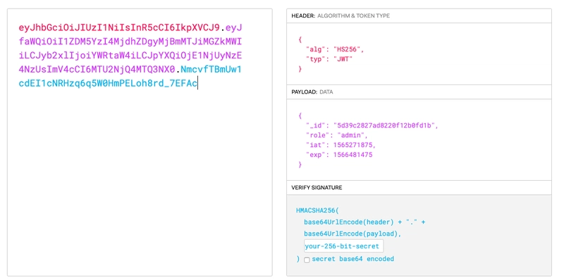 eyJhbGciOiJIUzI1NiIsInR5cCI6IkpXVCJ9.eyJfaWQiOiI1ZDM5YzI4MjdhZDgyMjBmMTJiMGZkMWIiLCJyb2xlIjoiYWRtaW4iLCJpYXQiOjE1NjUyNzE4NzUsImV4cCI6MTU2NjQ4MTQ3NX0.NmcvfTBmUw1cdEI1cNRHzq6q5W0HmPELoh8rd_7EFAc