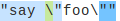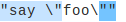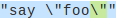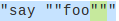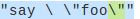 转义引号有两种方法。一种是使用双引号"say ""foo""",另一种是使用反斜杠"say \"foo\""。具体方法因语言而异。大多数语言都使用反斜杠,但你也能找到其他方法。我们将学习这两种方法。