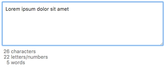 统计添加到文本框中的字符和单词数量。