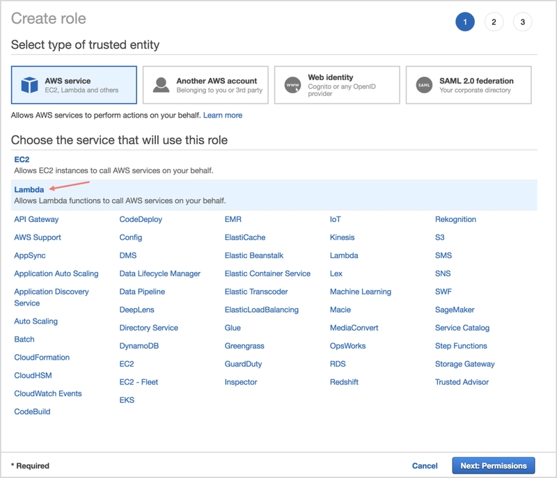 此角色将由您的 Lambda 函数使用,并需要获得执行特定操作的权限。