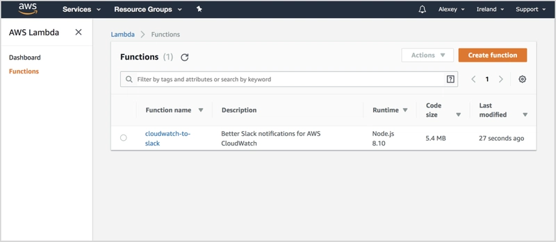 如果一切顺利,您将能够在 AWS 的 Lambda 页面上找到您新安装的函数。