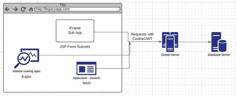 - 对用 JSP 编写的旧版 UI 代码进行更改:旧版代码数量庞大,融合了多种 UI 技术,涉及表单提交的 POST 请求、XHR 调用、原生 JS fetch 调用、jQuery 的 $.ajax 调用以及少量 axios 调用。要避免几乎每个代码部分都需要修改,同时还要确保新的身份验证机制正常工作(即每次服务器调用都应在 HTTP 标头中附加一个 bearer token),这变得非常困难。