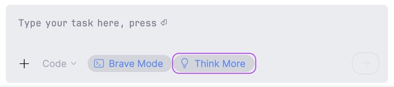 Junie 的聊天窗口下方有个小按钮,点击它就能改变一切。“深入思考”会指示模型进行更深入的推理。它通常会编写出更优质的代码,减少绕路,但也会消耗更多积分和时间。把它用在难题上,而不是重命名变量或调整日志行这种小事。把强大的计算能力留给真正重要的决策。