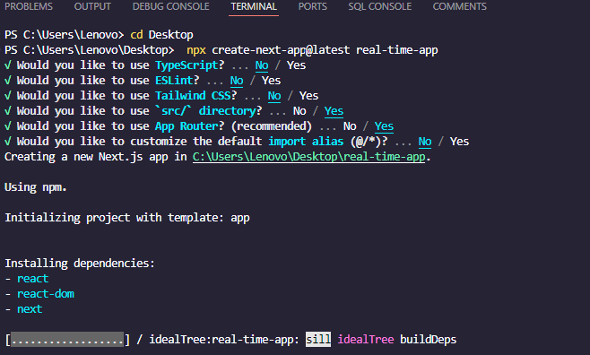 与遵循请求-响应模型的传统 HTTP 软件不同,WebSocket 支持双向通信。这意味着客户端和服务器可以随时互相发送数据,而无需持续轮询。要了解更多关于 WebSocket 的信息,请点击此处。事不宜迟,让我们开始开发实时通信应用程序。首先,我们将创建一个新的 Next.js 项目。