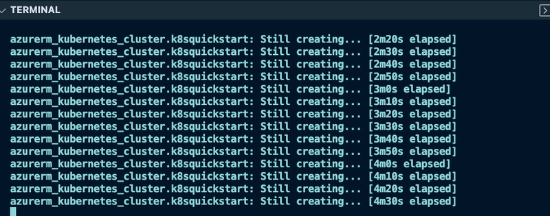 一旦您的 AKS 环境启动并运行,请确保使用以下命令连接到它,该命令会在本地启动 Kubeconfig,以便您可以在终端上访问 AKS 集群。