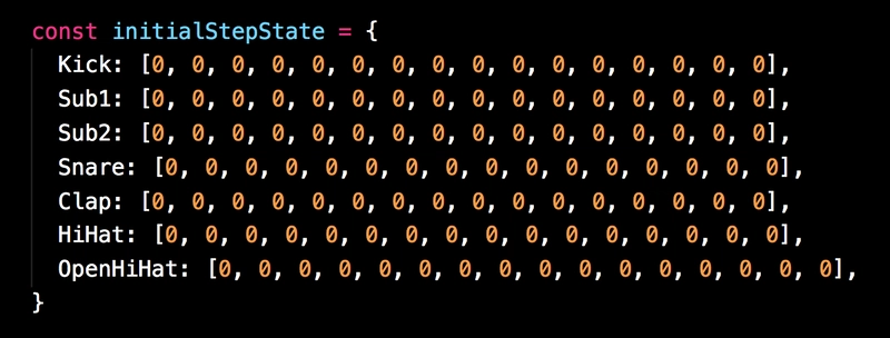 鼓机为我们提供了一个初始的节拍状态,音序器中的每个节拍都对应一个数组: