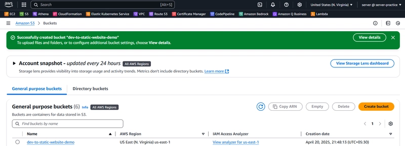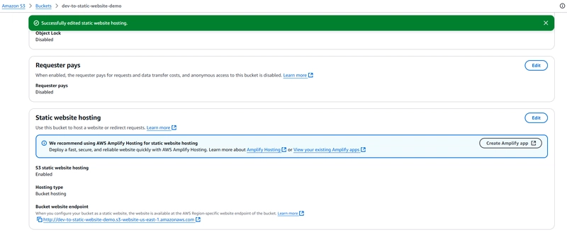 结论:就是这样!只需几个步骤,我就使用 Amazon S3 托管了一个静态网站。最棒的是,我无需设置任何服务器、安装软件,也无需担心流量扩展。S3 会在后台自动处理所有这些工作。与 EC2 或其他传统托管方案相比,使用 S3 托管静态内容要简单得多。它速度快、成本低、可扩展。无论您是托管作品集、个人网站还是落地页,S3 都是绝佳之选。