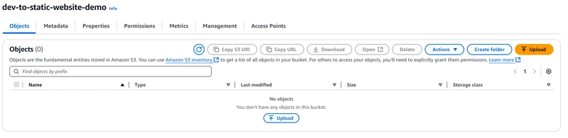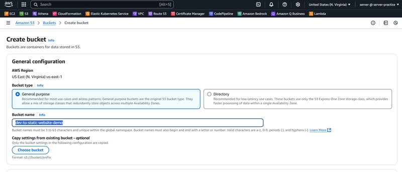 在本指南中,我们将在 AWS S3 上托管一个简单的静态网站。我们将把网站文件(例如index.html图片等)上传到 S3 存储桶,并将其配置为可公开访问的网站。