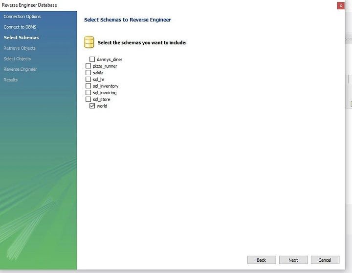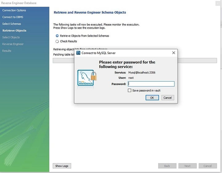 点击“执行”按钮开始逆向工程过程。根据数据库的大小,这可能需要一些时间。