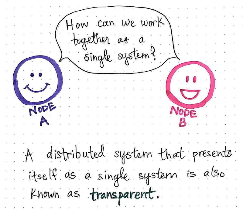 我们知道,分布式系统顾名思义,包含多台机器/进程/资源(称为节点),它们可能位于完全不同的位置。然而,在使用分布式系统时,一切看起来都像是一个整体。换句话说,即使我们(用户)可能同时与多个节点交互,但我们却感觉不到这一点。相反,我们很可能感觉自己是在处理一个单一的系统,或者一台机器/进程。