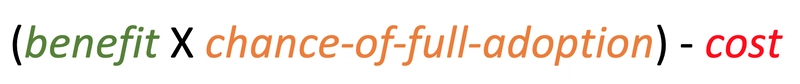 与任何其他商业决策一样,为初创公司构建组件库也关乎成本效益比。对于组件库而言,一个非常简化和抽象的公式看起来大致如下: