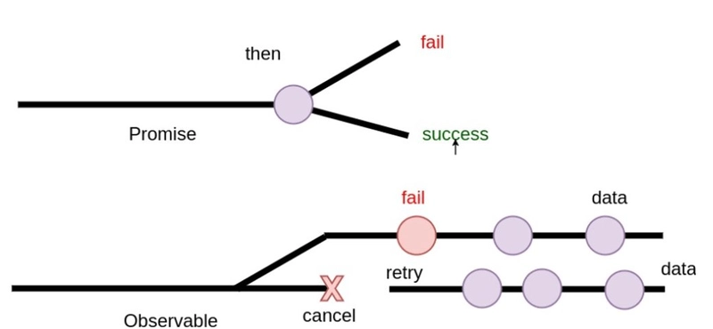 - Promise 没有取消或操作 API。Observable 有。