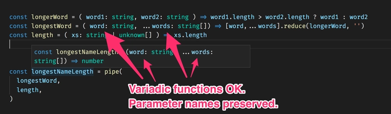 事实证明,递归Pipe(和Compose)类型比传统的参数重载方法具有关键优势。关键优势如下: